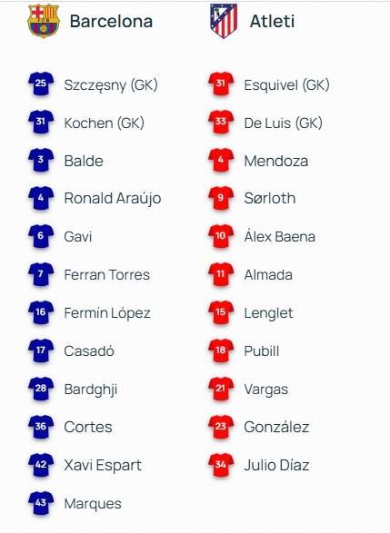 北京时间4月9日03:00,欧冠1/4决赛首回合的一场对决。巴萨坐镇主场,迎战马竞。赛前,双方的阵容公布如下: