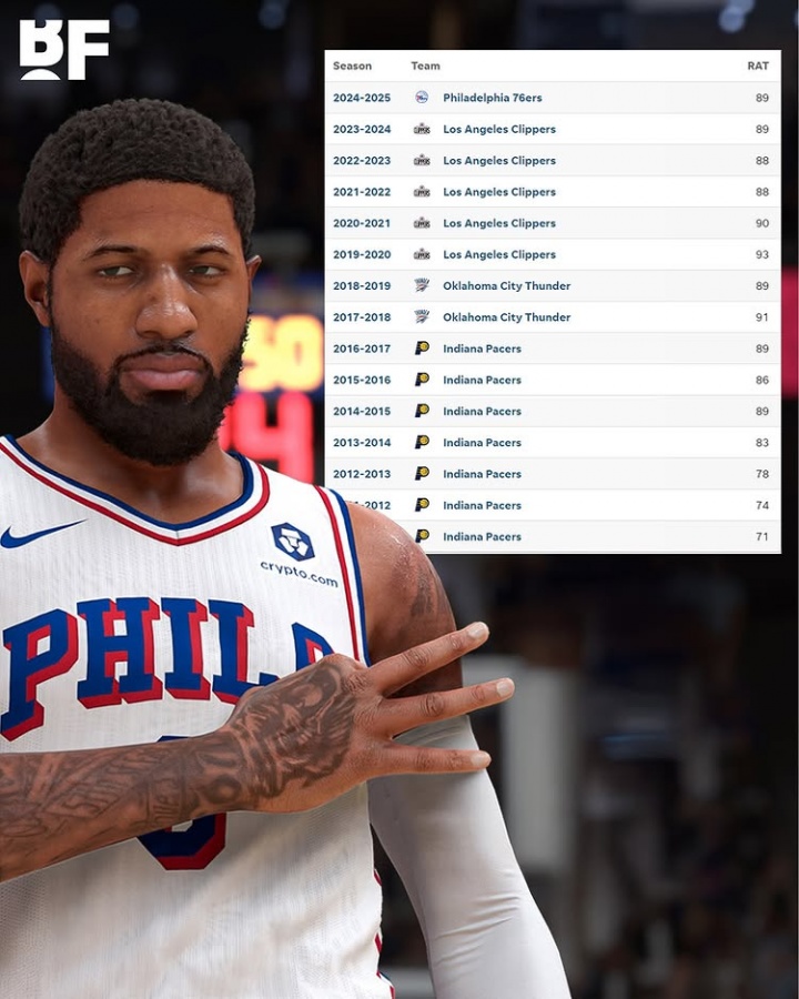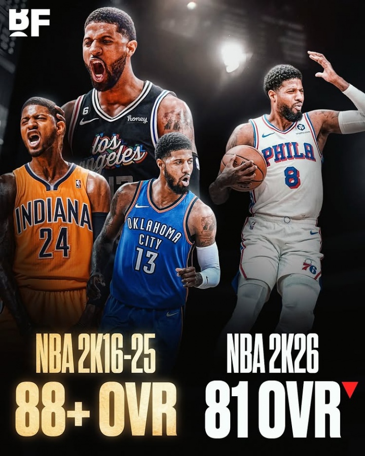 PG电子试玩游戏-乔治2K26能力值降至81,年薪超五千万,连续九季保持88+纪录终结